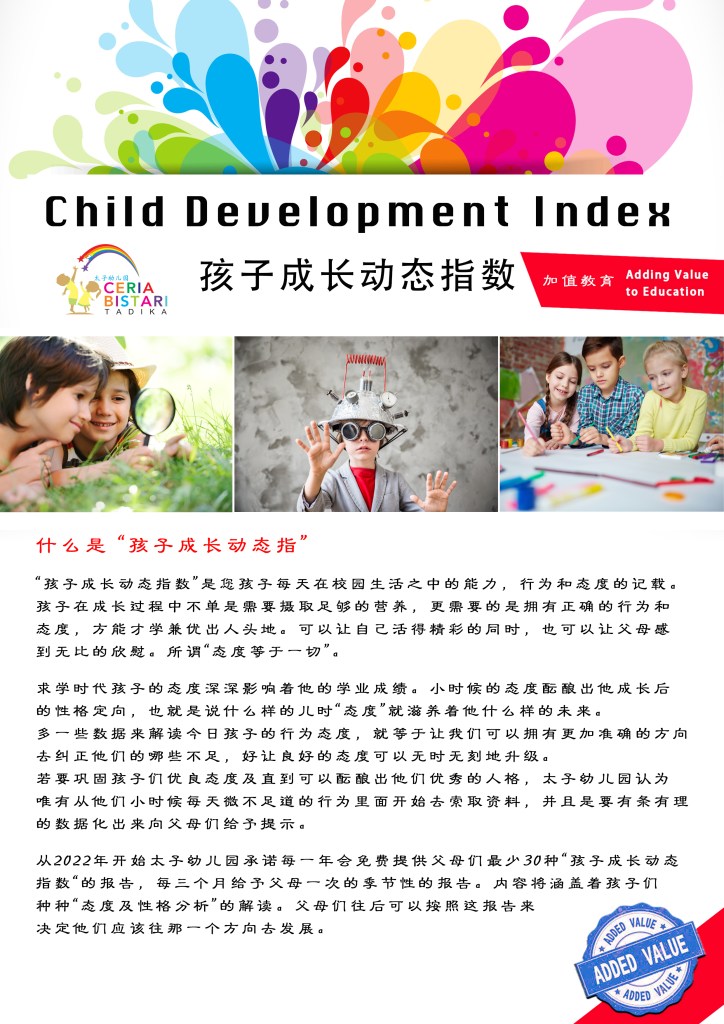 The Children Development Index serves as a powerful tool to evaluate and nurture your child’s learning journey. We understand that attitude is paramount to success, and by closely monitoring key aspects of your child’s behavior and mindset, we can promptly address any areas of concern. Through collaboration between teachers and parents, we strive to guide and support your child in cultivating positive habits and overcoming challenges.